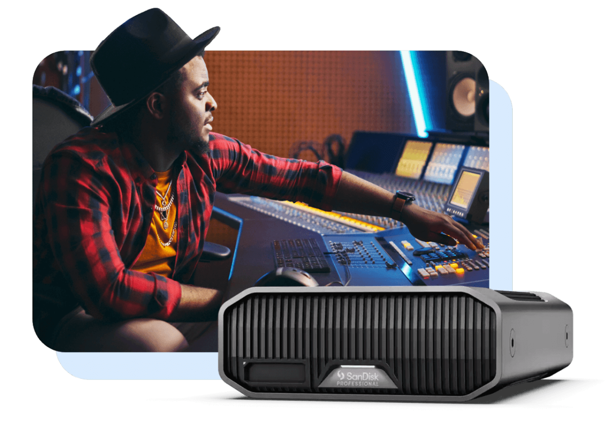 3. S’applique uniquement aux SanDisk Professional G-DRIVE PROJECT et G-DRIVE PRO Desktop Drive. 1 Mo/s = 1 million d’octets par seconde. Résultat basé sur des tests internes ; les performances peuvent varier en fonction du périphérique hôte, des conditions d’utilisation, de la capacité du disque et d’autres facteurs.
