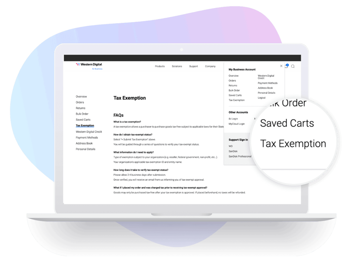If you haven’t already, register for a Western Digital for Business account for tax exemption and other exclusive benefits.